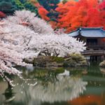 桜と紅葉が綺麗な日本庭園