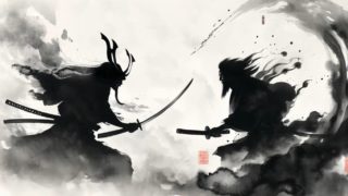 墨の濃淡やにじみ、筆の動きを感じさせる表現が特徴で、和風・日本的な世界観を演出できます。